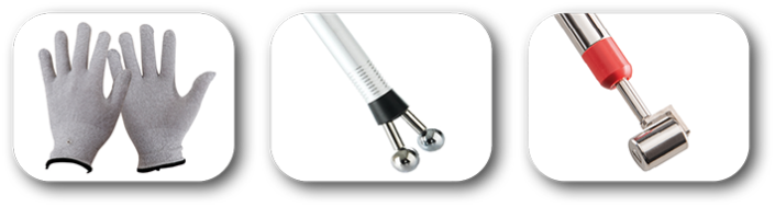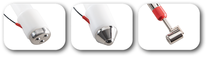 MODULO PLUS Versión PRO, además, cuenta con un electrodo de rodillo de acero a utilizar en caso de que los productos sean aplicados directamente sobre la piel. Este aplicador se utiliza para tratar áreas delimitadas con pequeñas cantidades de producto.