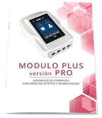 MODULO PLUS Versión PRO es un generador de microcorrientes que utiliza un bajo nivel de corriente (microamperios). Esta ligera corriente está debajo del umbral del dolor humano y por lo tanto, el paciente no puede percibirla.
