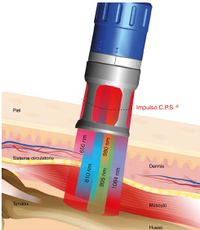 La multilongitud de onda, la elevada potencia de pico (400W) y las elevadas potencias medias que alcanzan los 31W (incluso a baja frecuencia), permiten un amplio desarrollo volumétrico de la zona tratada, con el suministro de una gran cantidad de energía en profundidad, asegurando una penetración tisular particularmente alta.